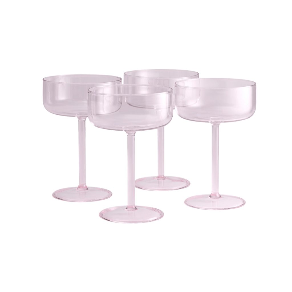 Набор из 4 изящных бокалов для шампанского объемом 280 мл. Идеально подходят для подачи игристых вин, коктейлей и десертов.