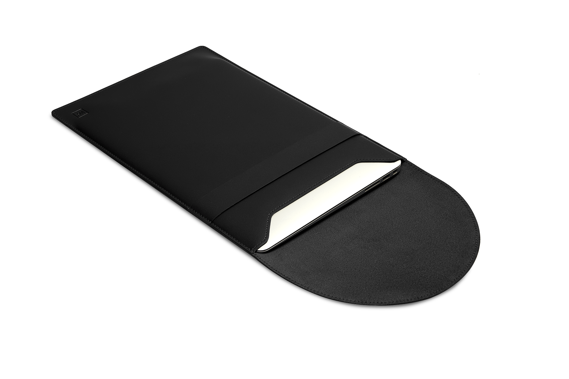 Крышка-клапан, за счет увеличенного размера, позволяет использовать изделие и в качестве коврика для мышки. Поверхность выполнена из натуральной гладкой кожи,обеспечивает хорошее сцепление с поверхностью стола, благодаря чему чехол не скользит и не сдвигается кистью во время активной работы за ноутбуком.