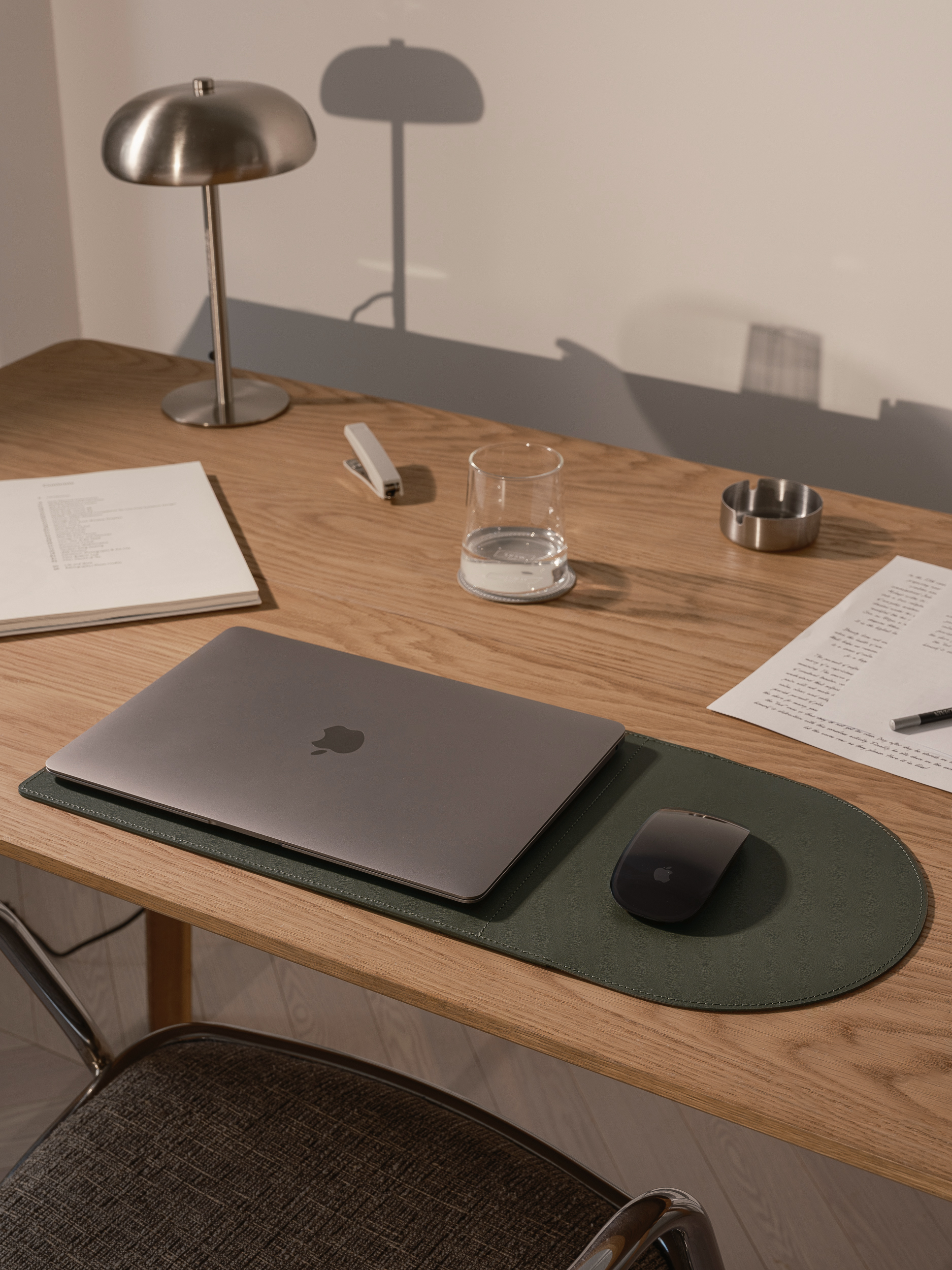 Крышка-клапан, за счет увеличенного размера, позволяет использовать изделие и в качестве коврика для мышки. Поверхность выполнена из натуральной гладкой кожи,обеспечивает хорошее сцепление с поверхностью стола, благодаря чему чехол не скользит и не сдвигается кистью во время активной работы за ноутбуком.