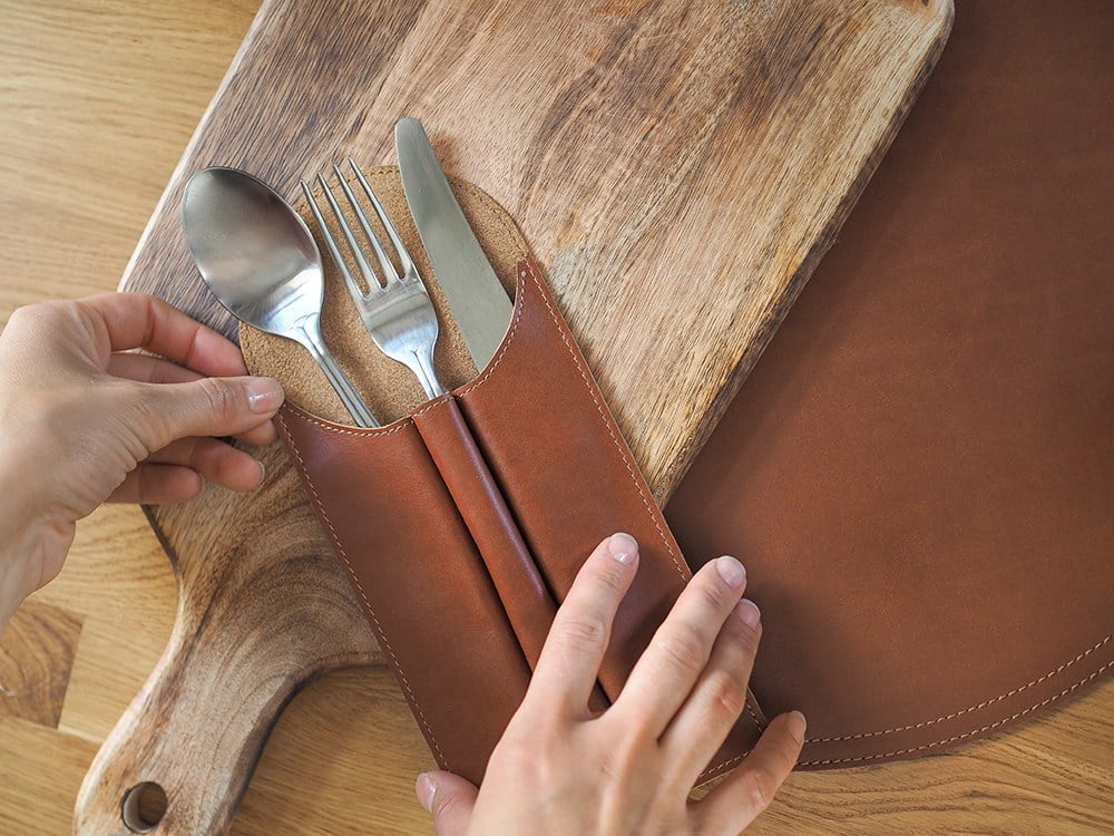 Wave — чехол для столовых приборов из натуральной кожи. Незаменимый органайзер для обеденного стола.
