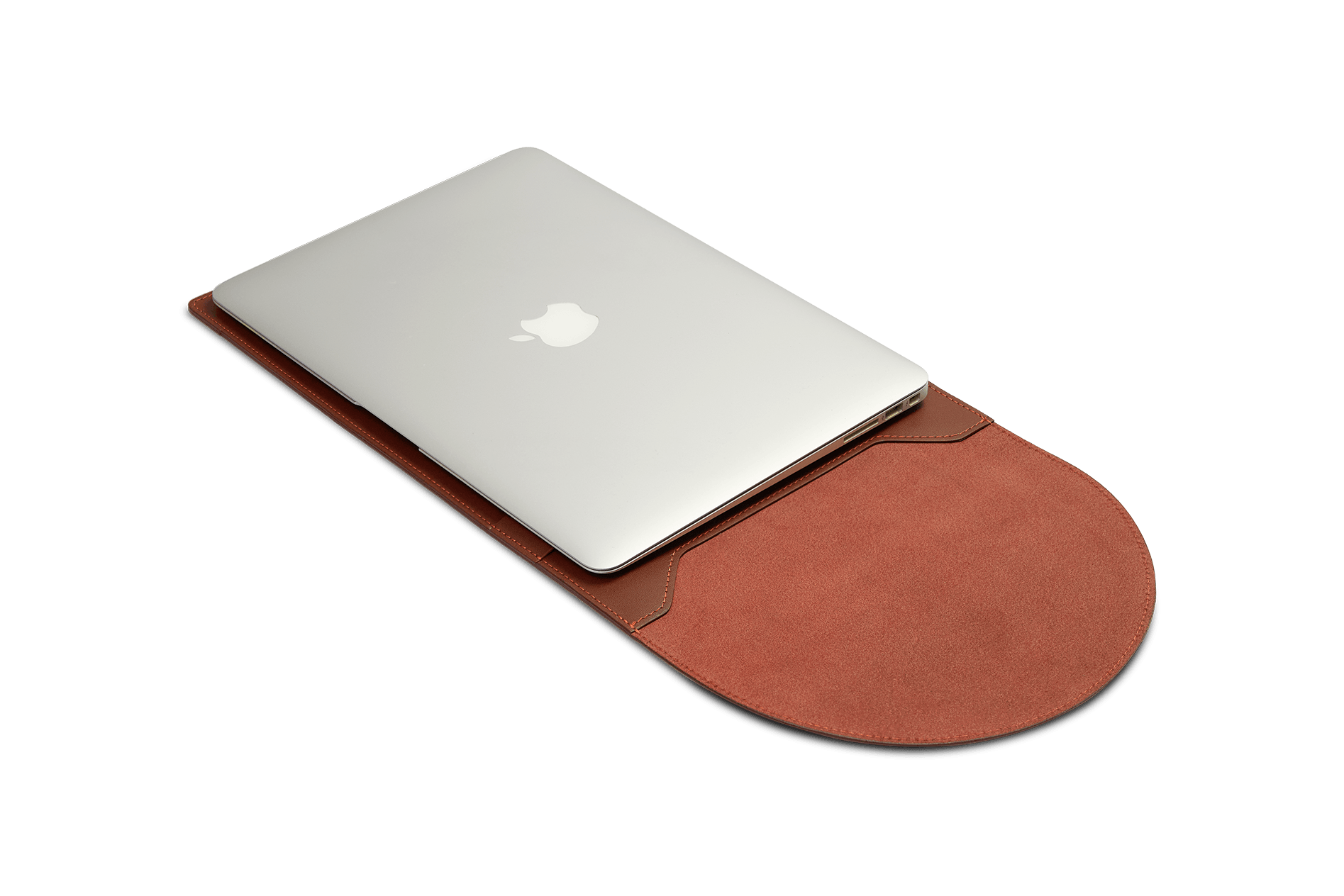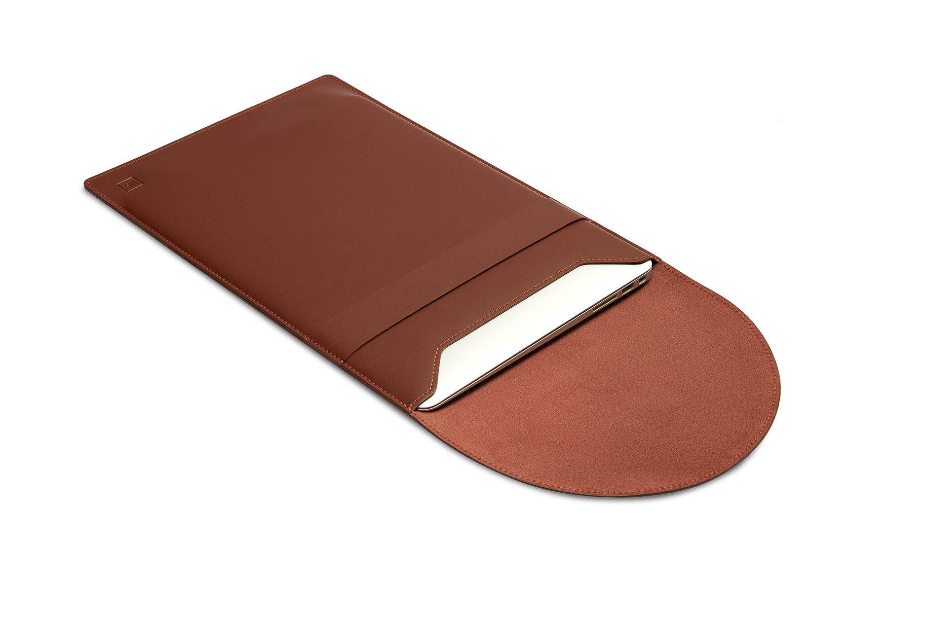 Внутренняя часть изделия выполнена из мягкой ткани, защищающей ноутбук от царапин и потертостей. Внешнее покрытие приятное на ощупь и не скользит в руках. Крышка чехла удобно закрывается и фиксируется с помощью кожаной полоски на лицевой стороне изделия, не позволяя устройству выпасть.