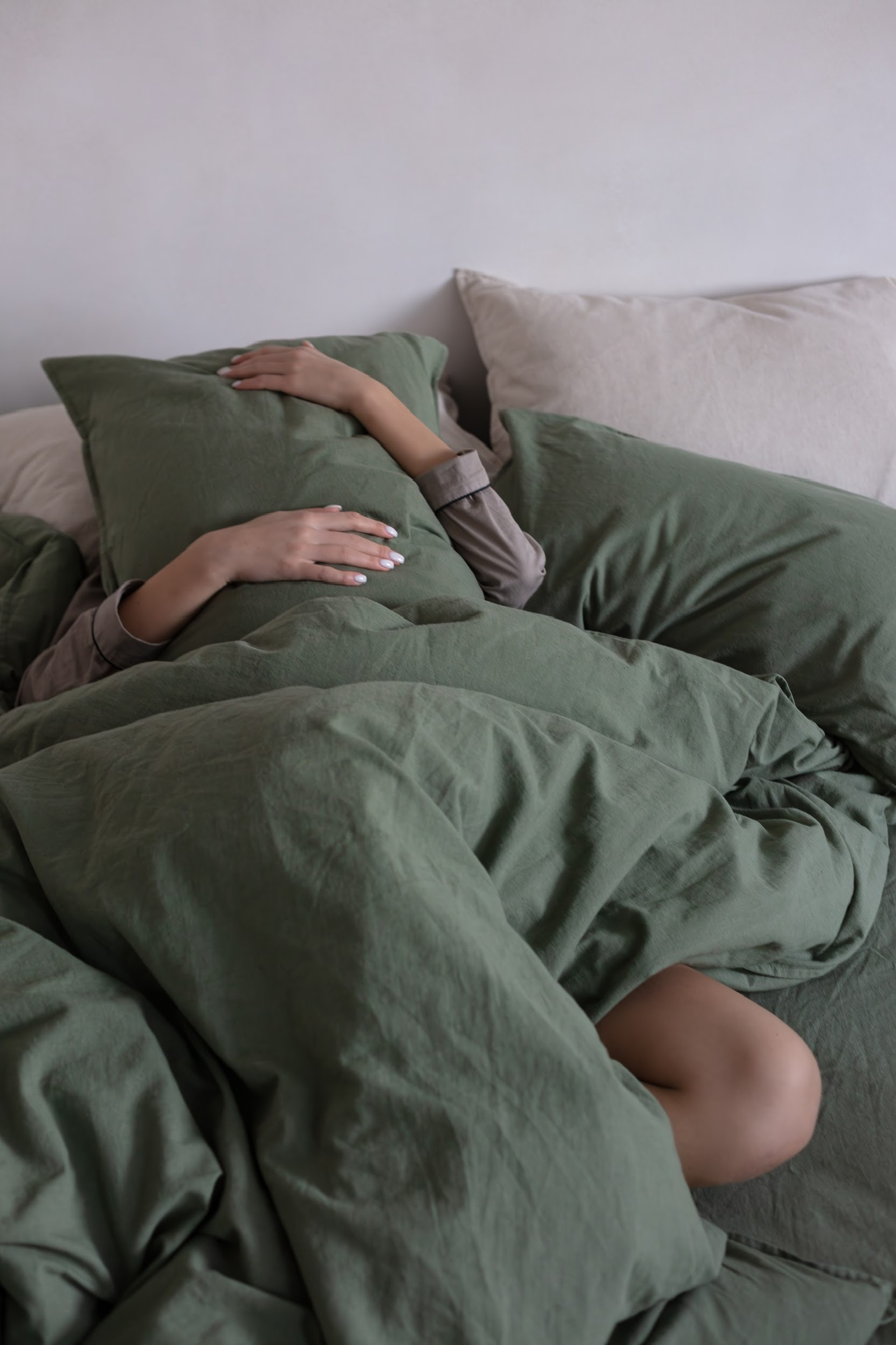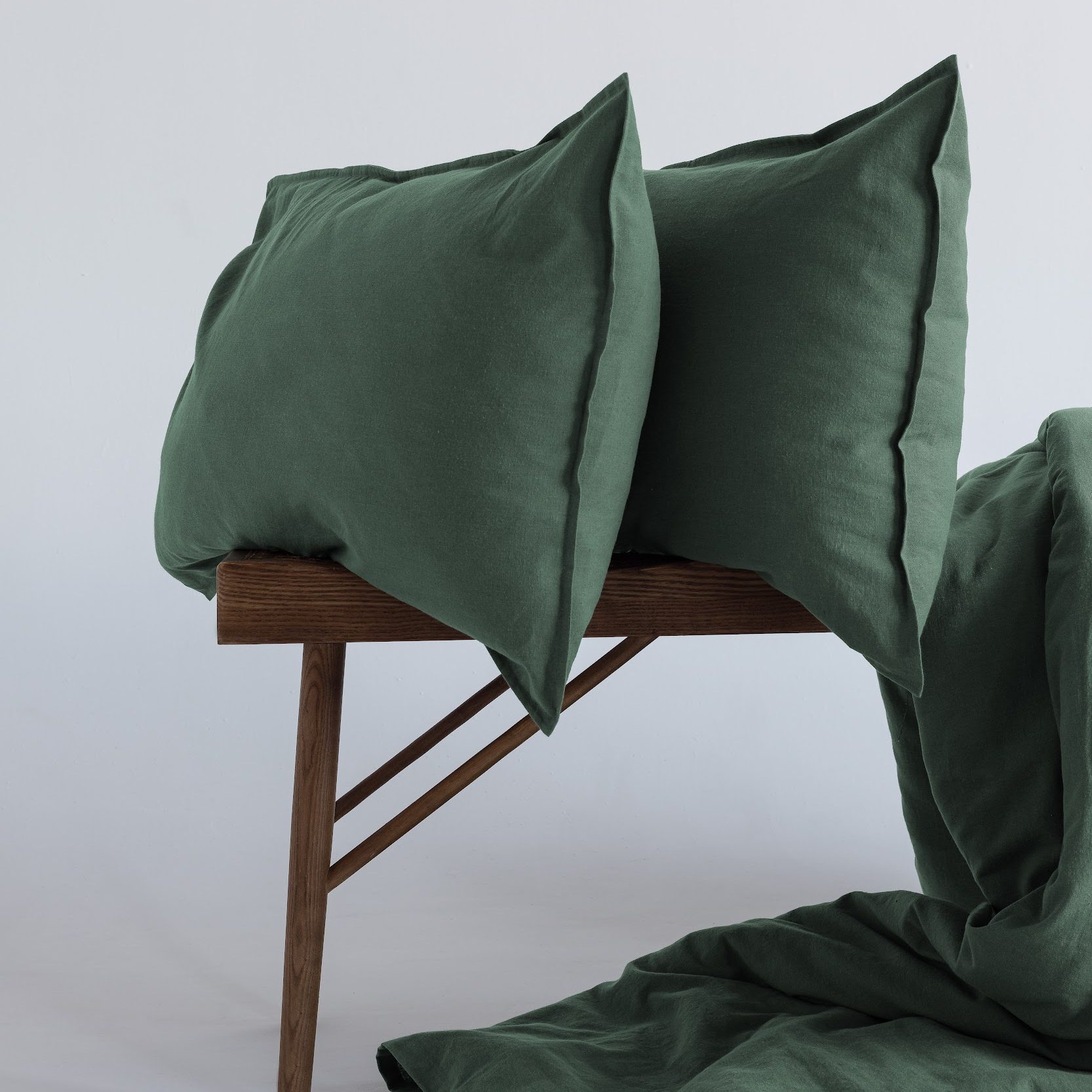 Наволочки из натуральной хлопково-льняной ткани с эффектом мятости.