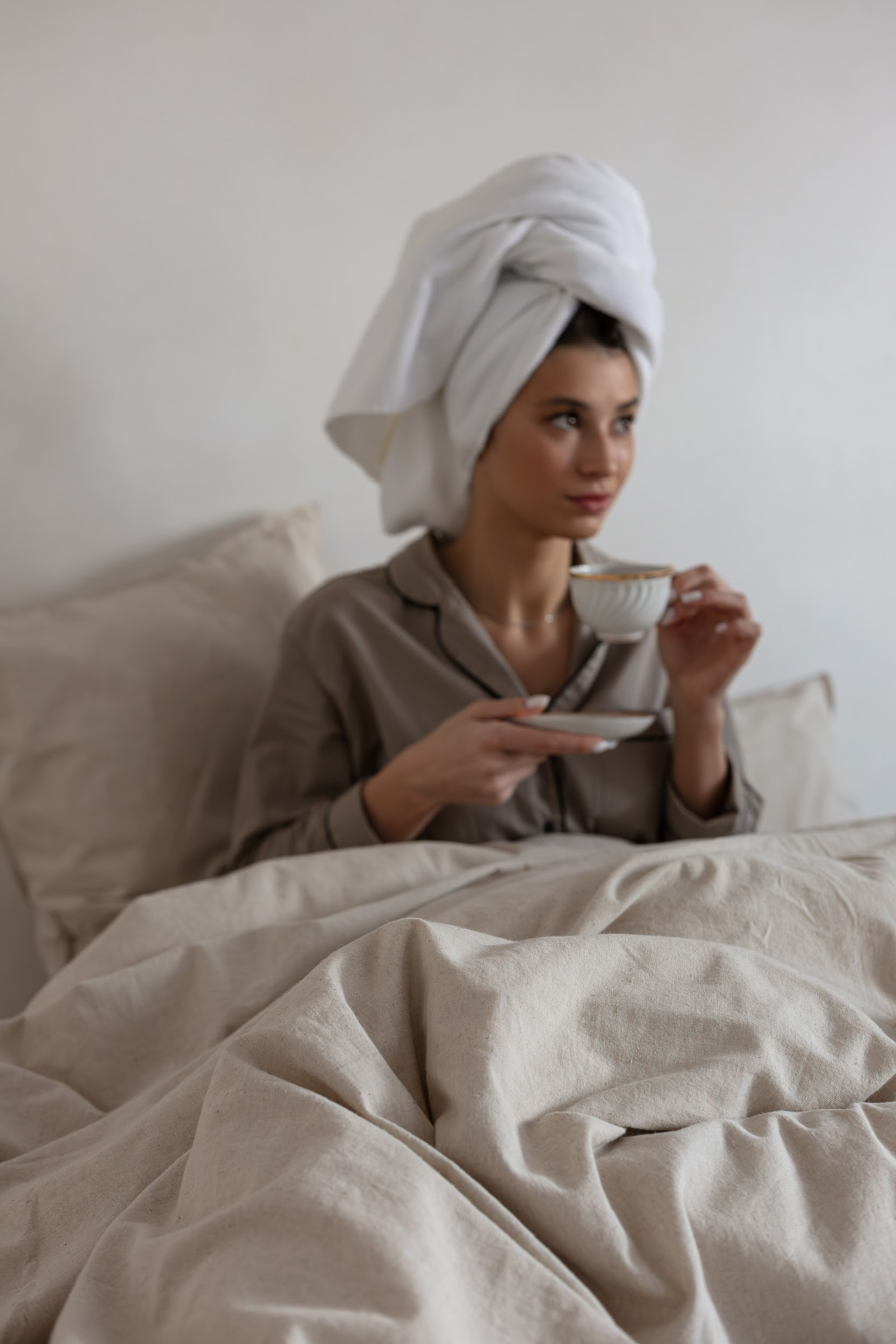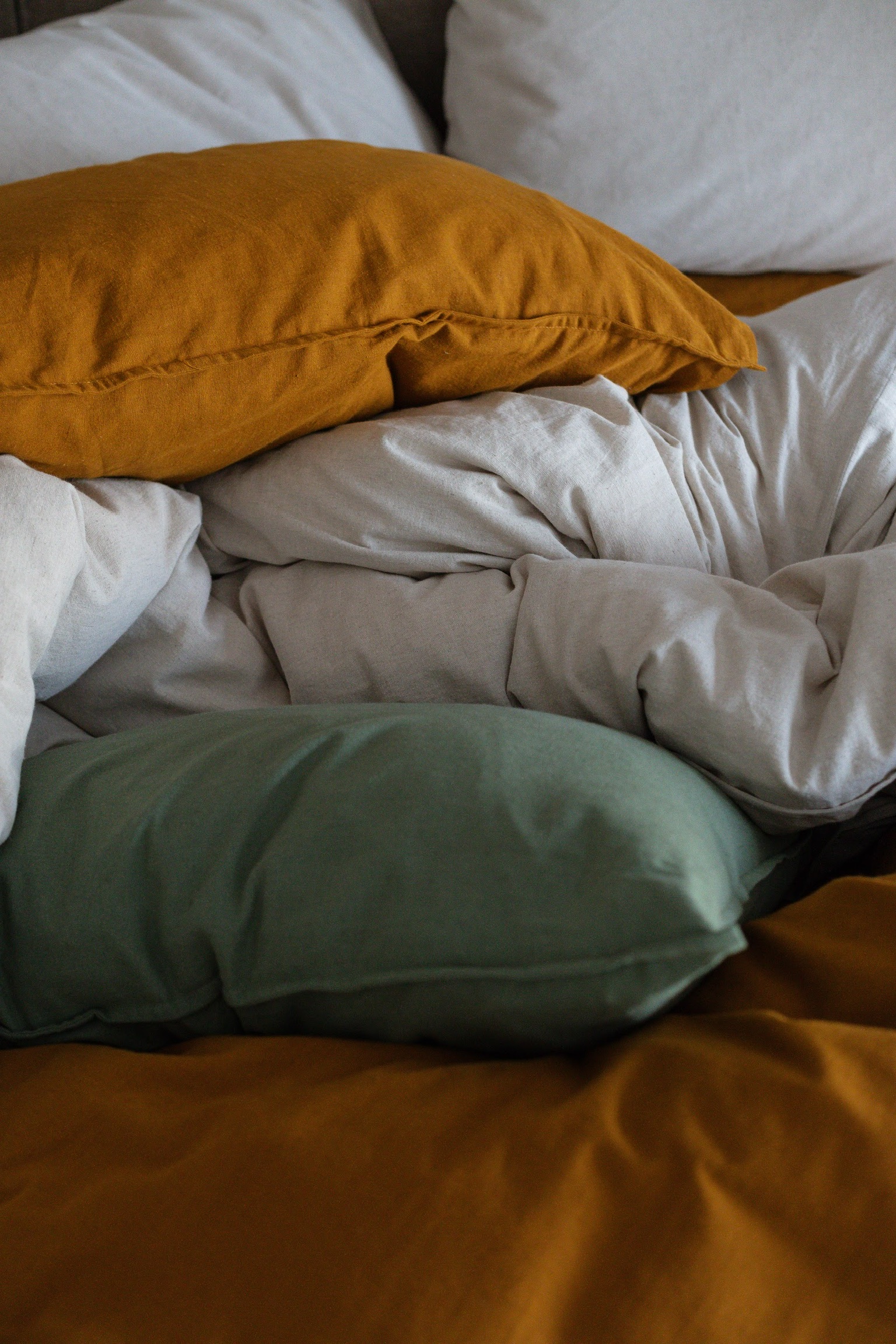 Постельное белье из натуральной хлопково-льняной ткани с эффектом мятости.