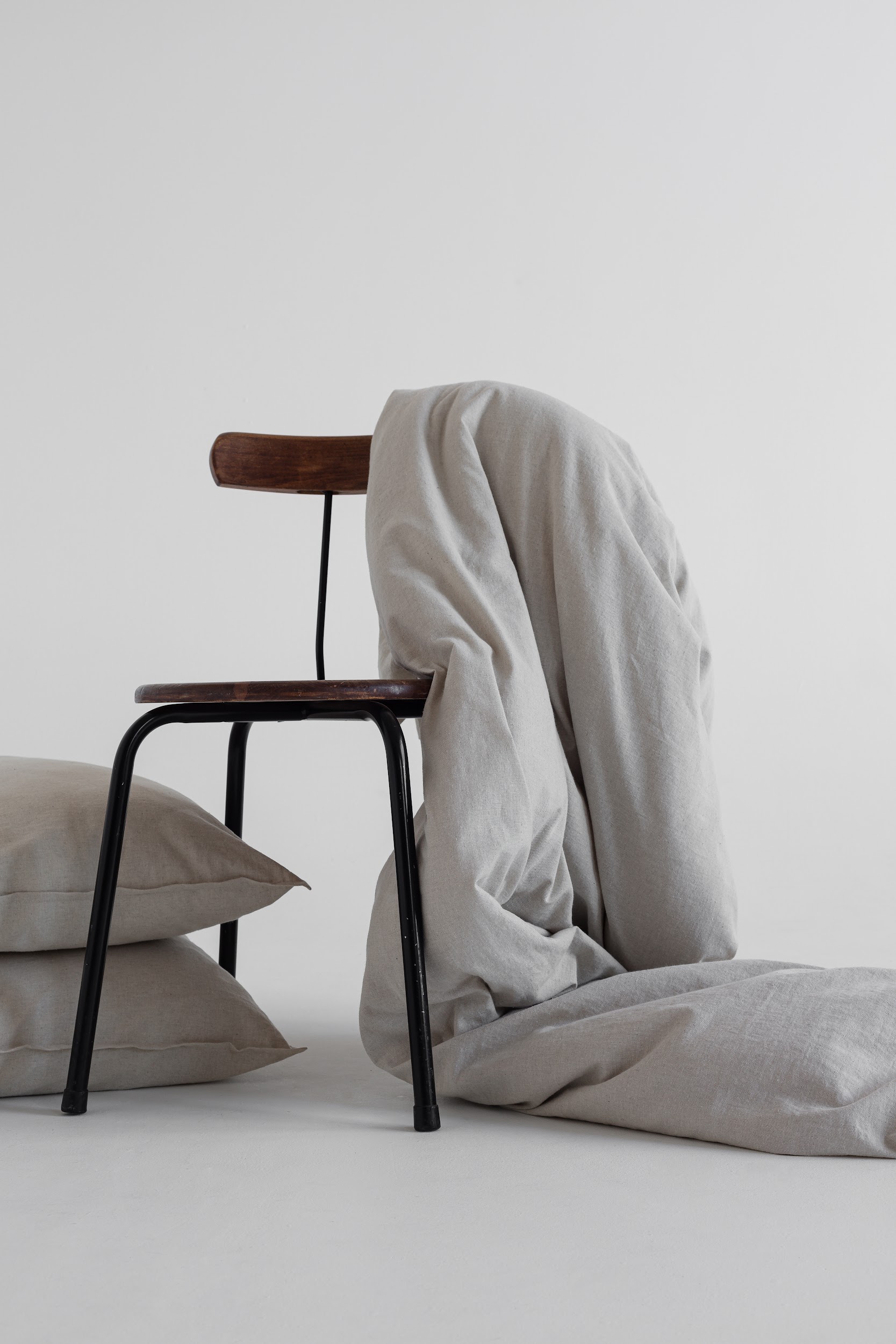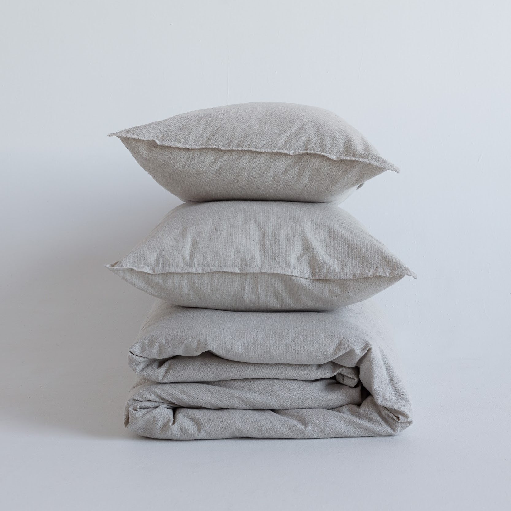 Постельное белье из натуральной хлопково-льняной ткани с эффектом мятости.