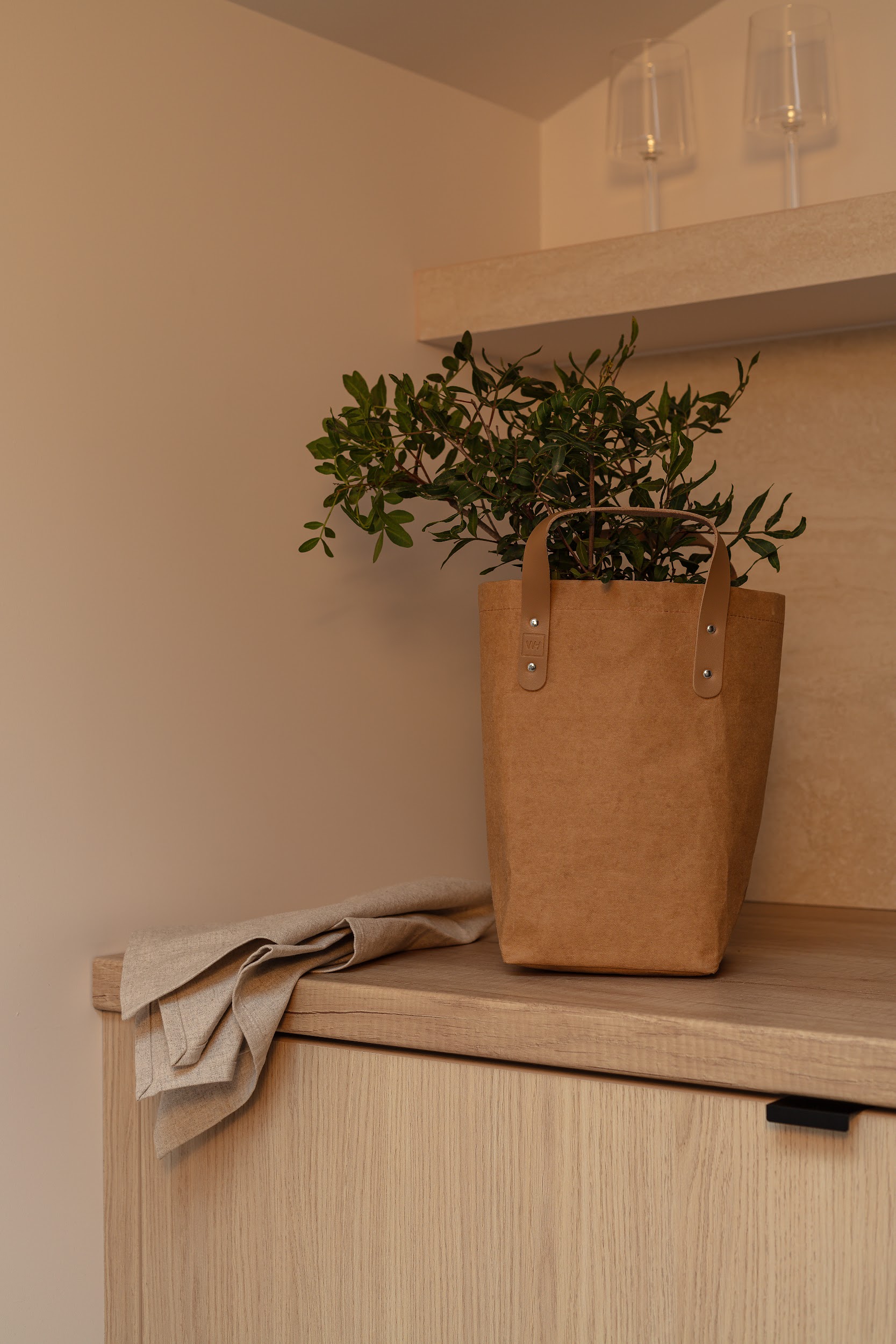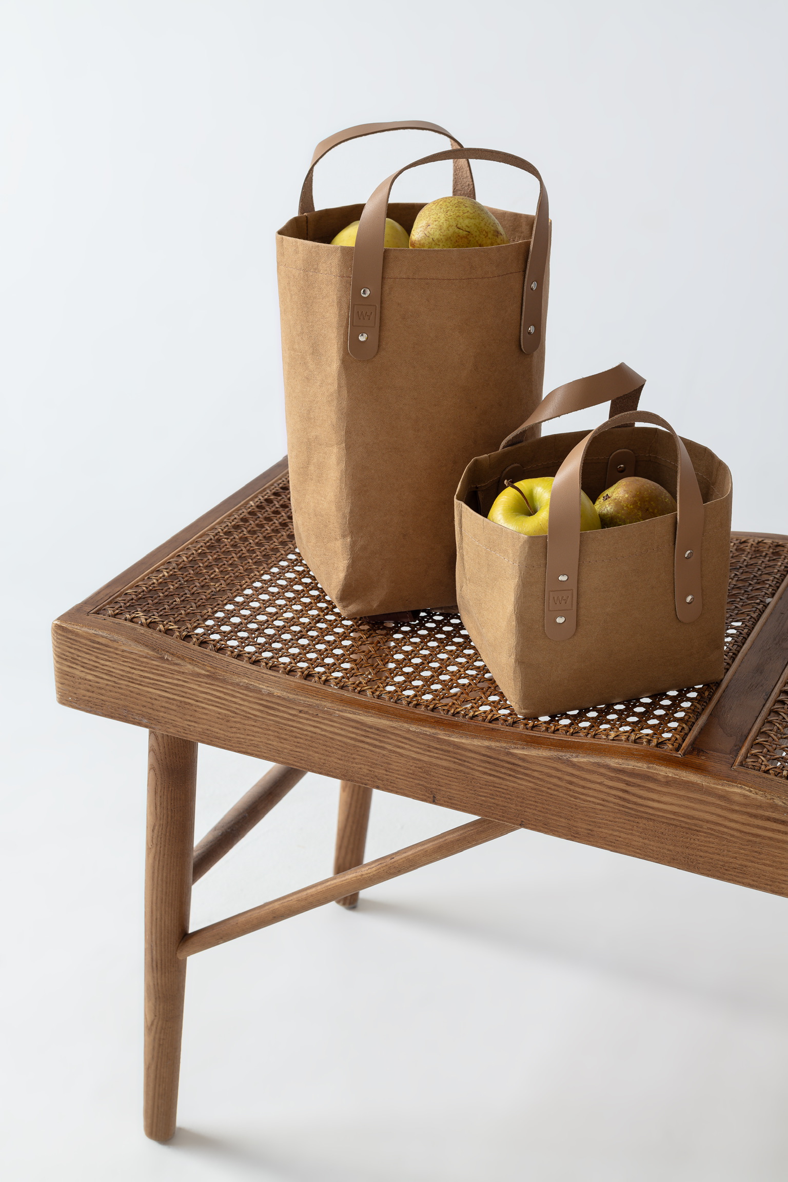 Pelican Medium — корзинка для дома, выполненная из крафтовой бумаги с ручками из натуральной кожи.