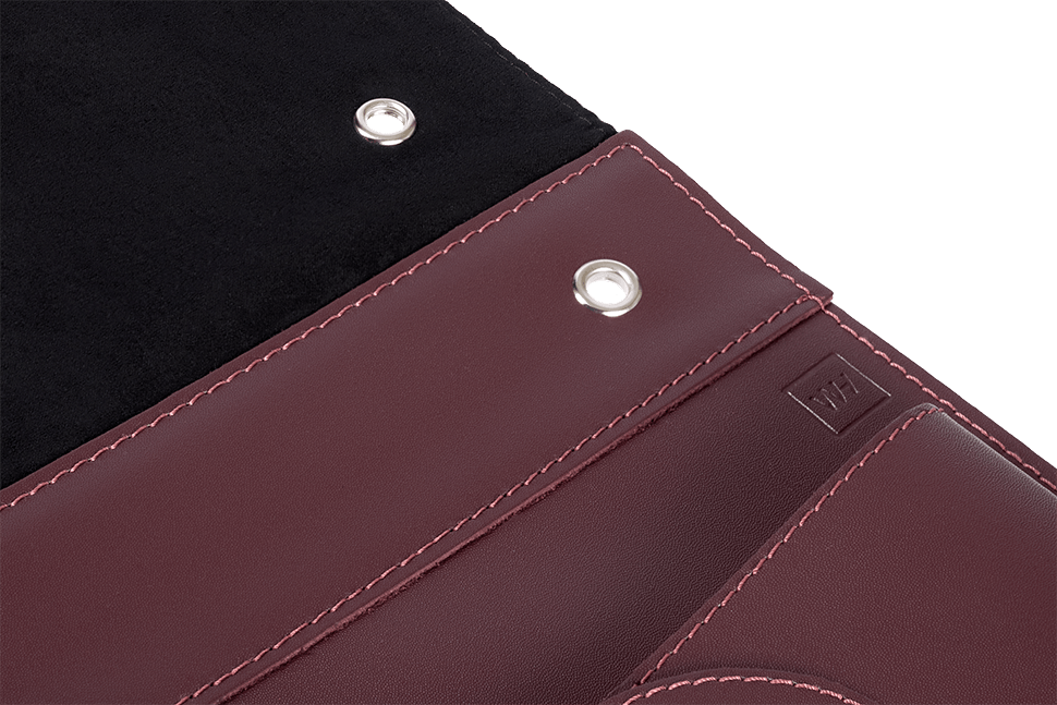 В изделии есть 3 лаконичных отделения на кобурных кнопках для вещей разных размеров, которые нужны нам каждый день. На левой стороне расположились два компактных кармана для мелочей, на правой — один большой карман для бутылки воды или вещей побольше.
