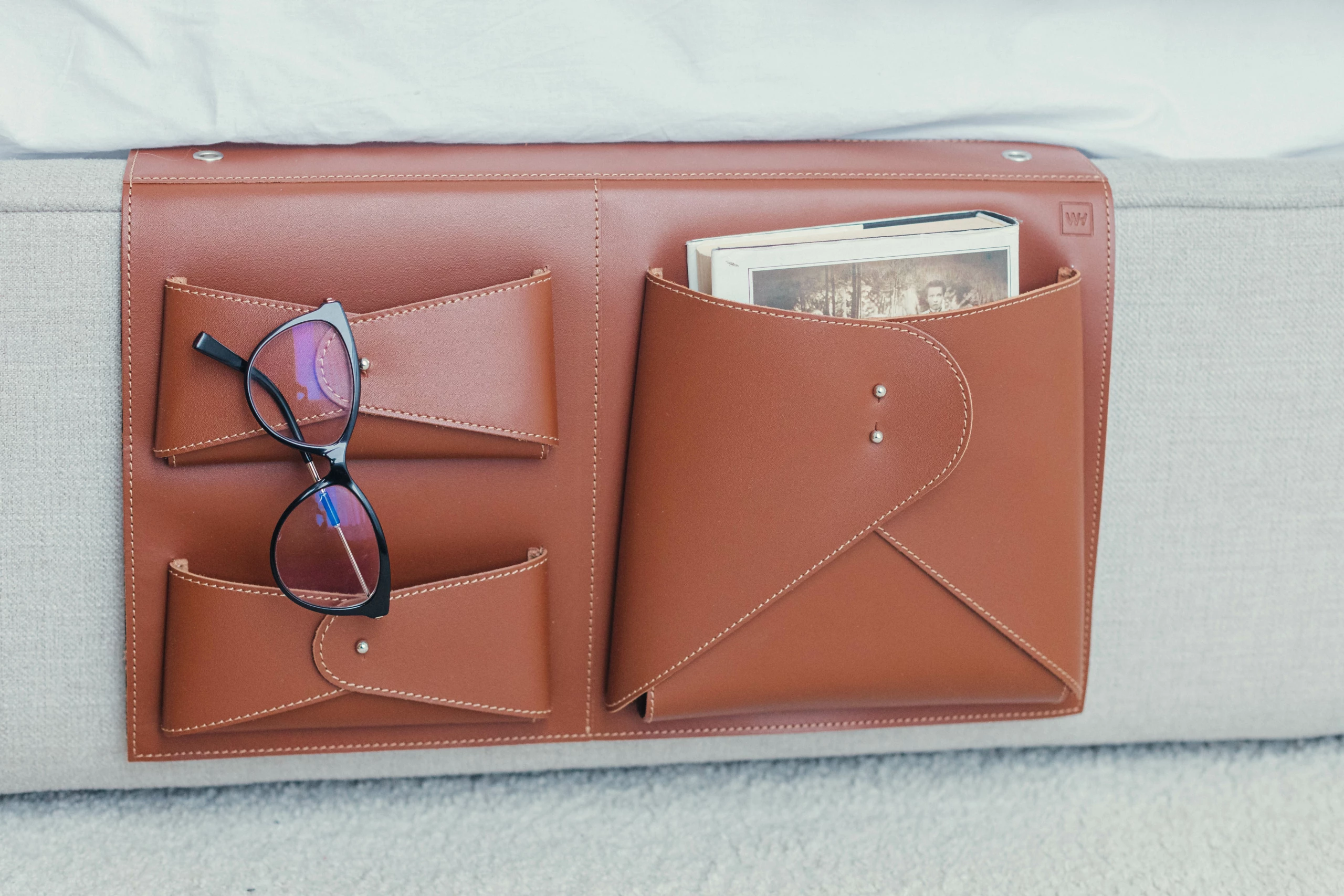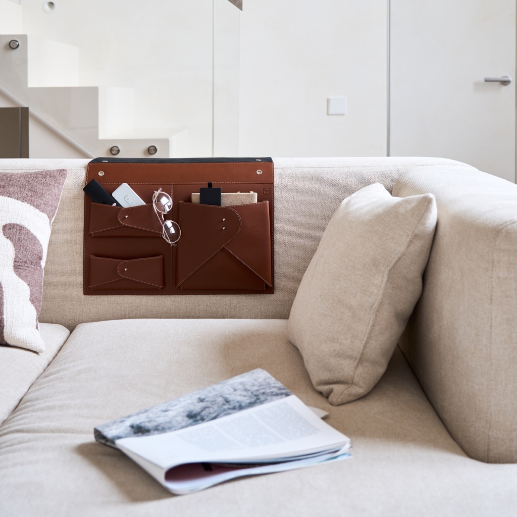 Pockets — органайзер из натуральной плотной кожи «бюргер». Аксессуар разработан для удобства размещения важных мелочей в спальной зоне и в гостиной.