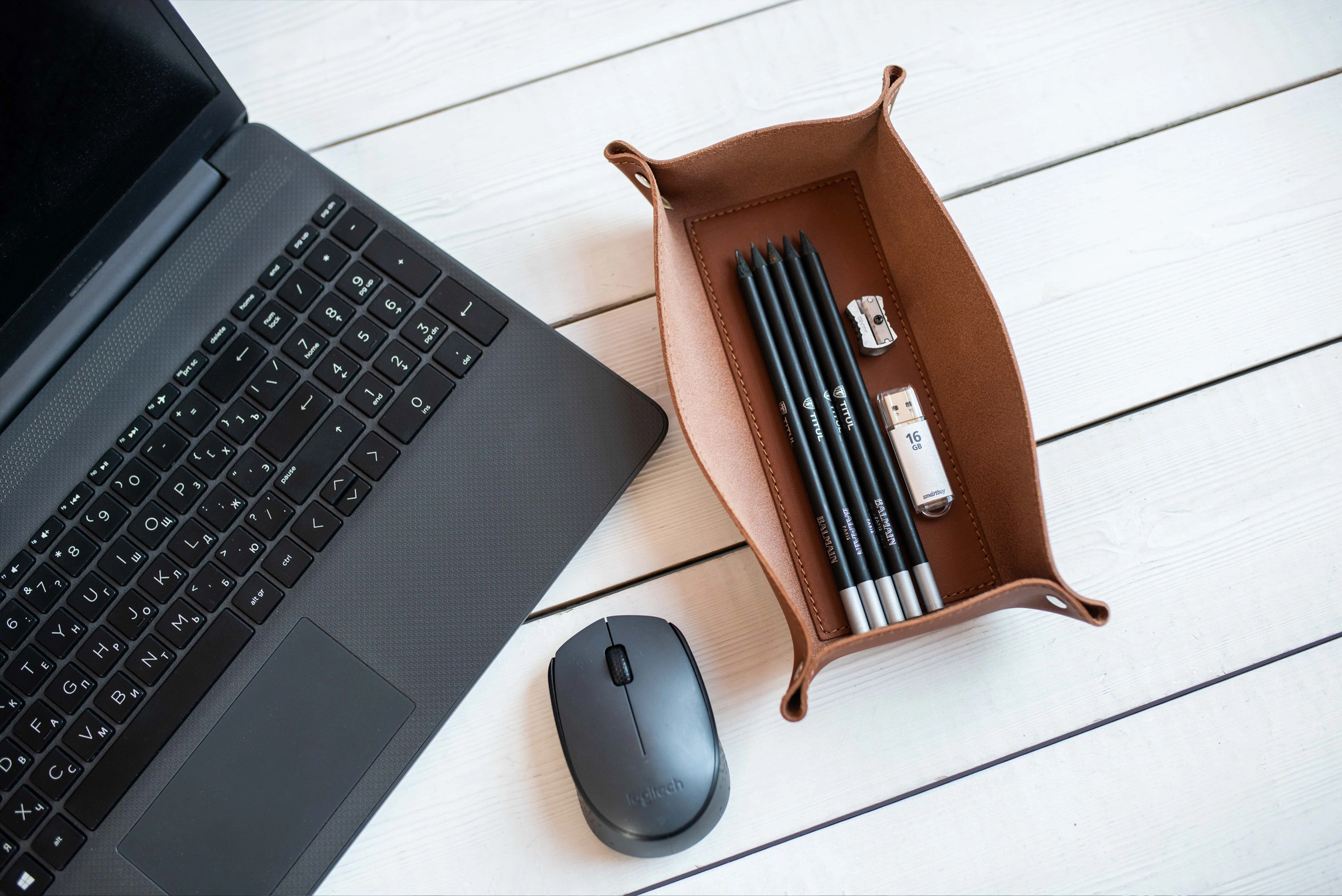 Органайзер из натуральной кожи соберет все канцелярские принадлежности в одном месте, не оставляя беспорядку шансов.