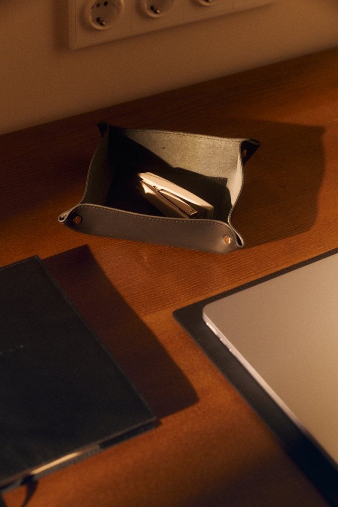 Настольный органайзер для мелочей из натуральной кожи соберет все важные мелочи в единое целое, не оставляя беспорядку шансов.
