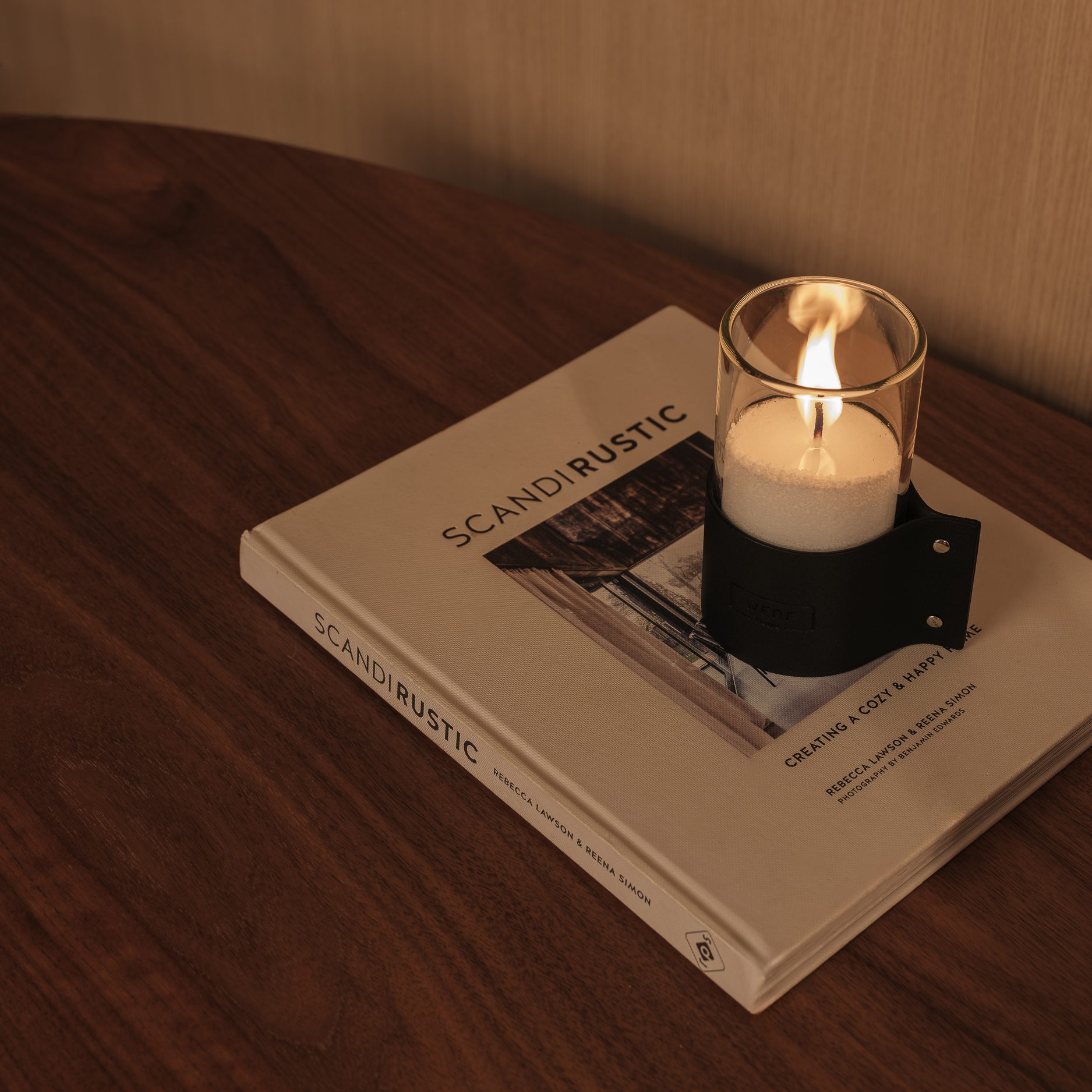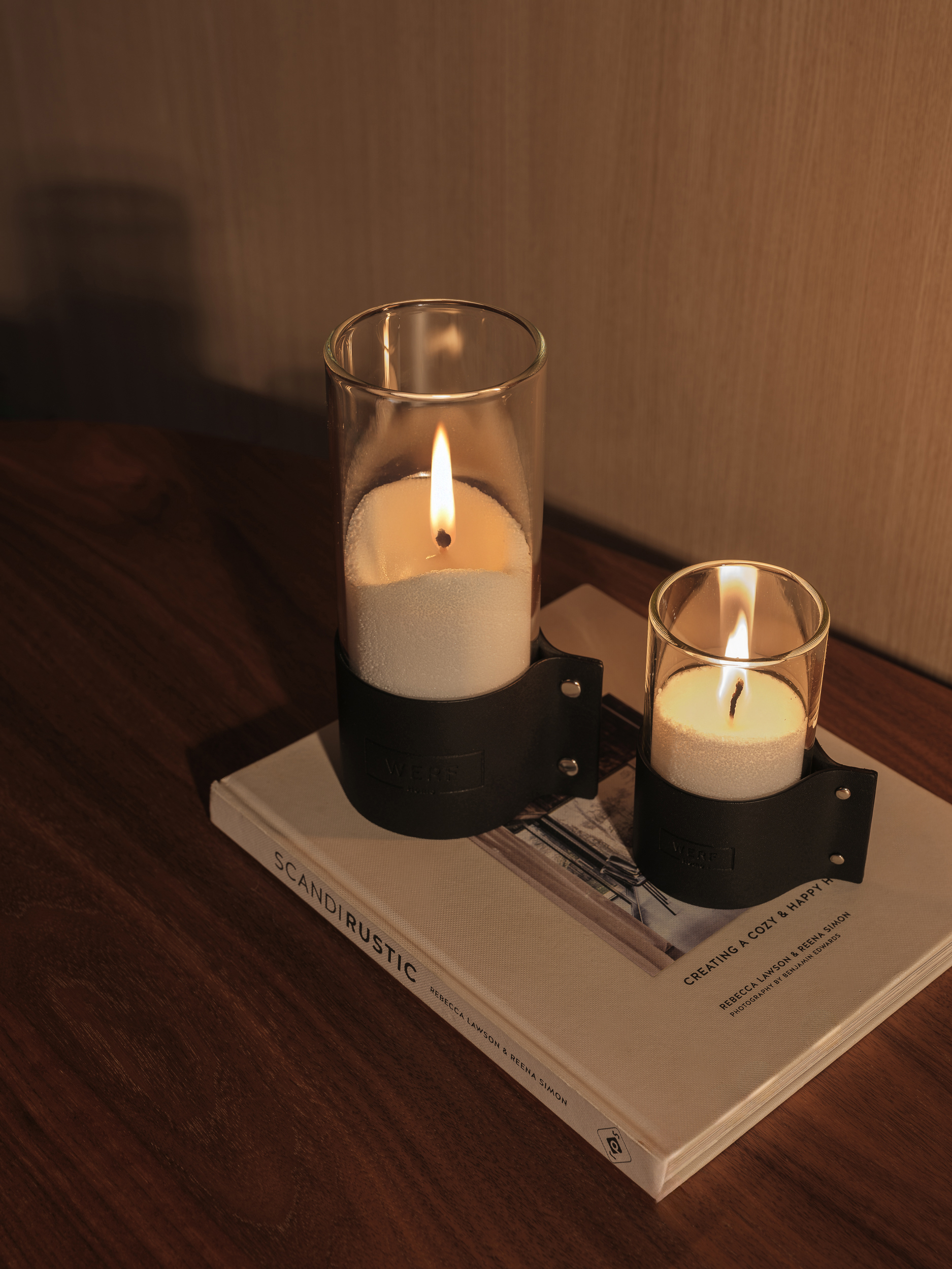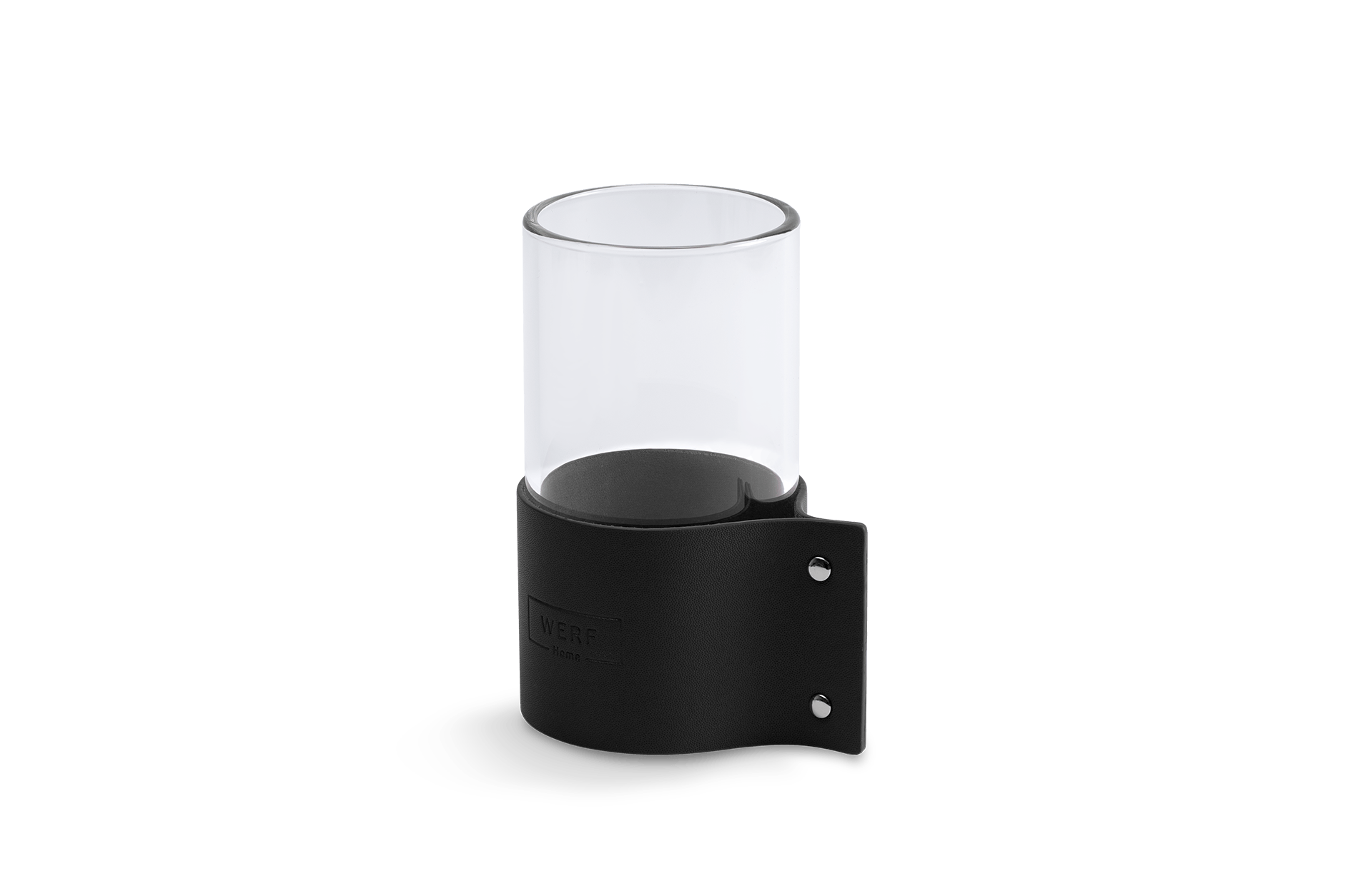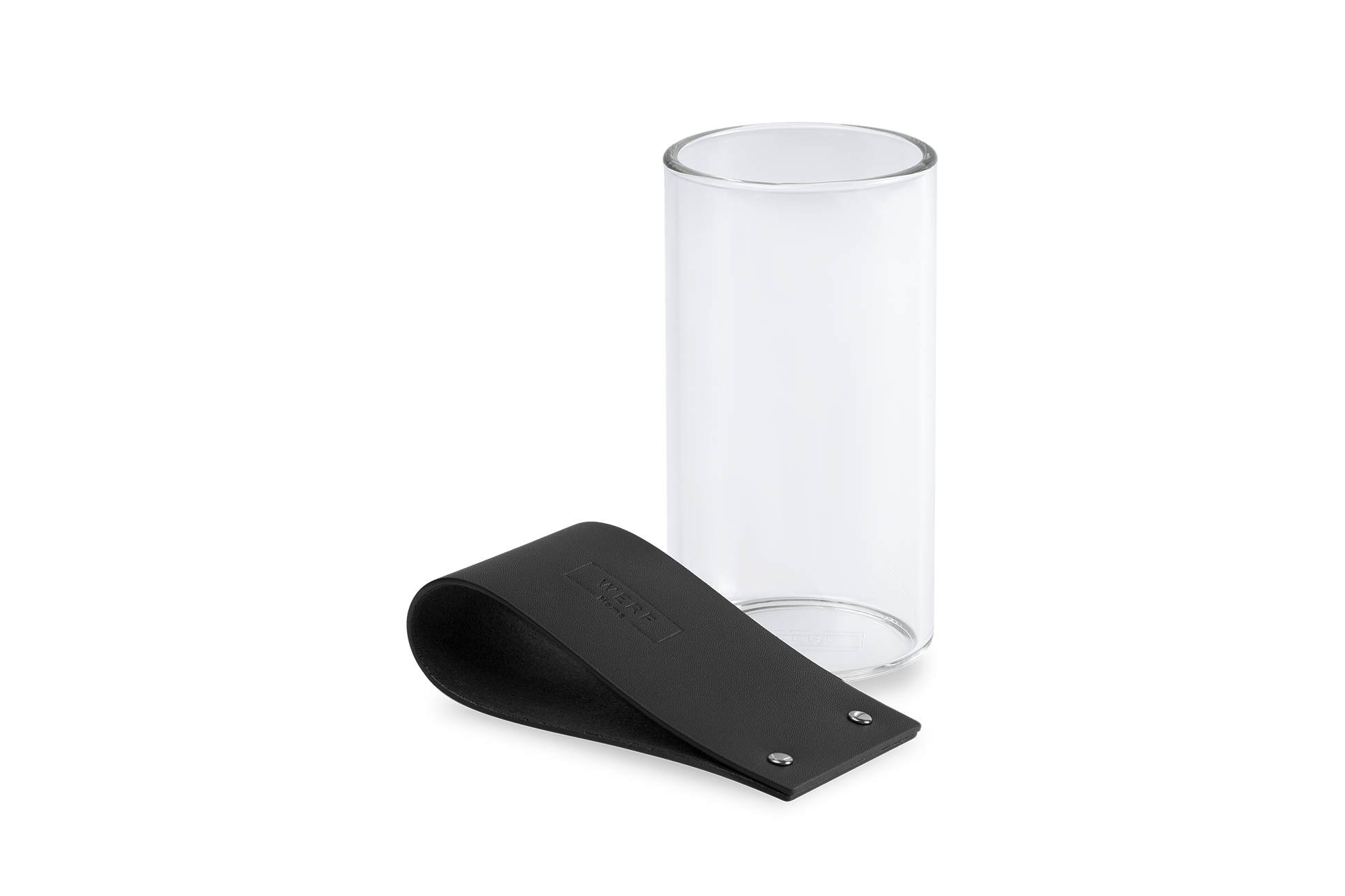 Ваза-подсвечник из боросиликатного термостойкого стекла с кожаным холдером с тиснением.