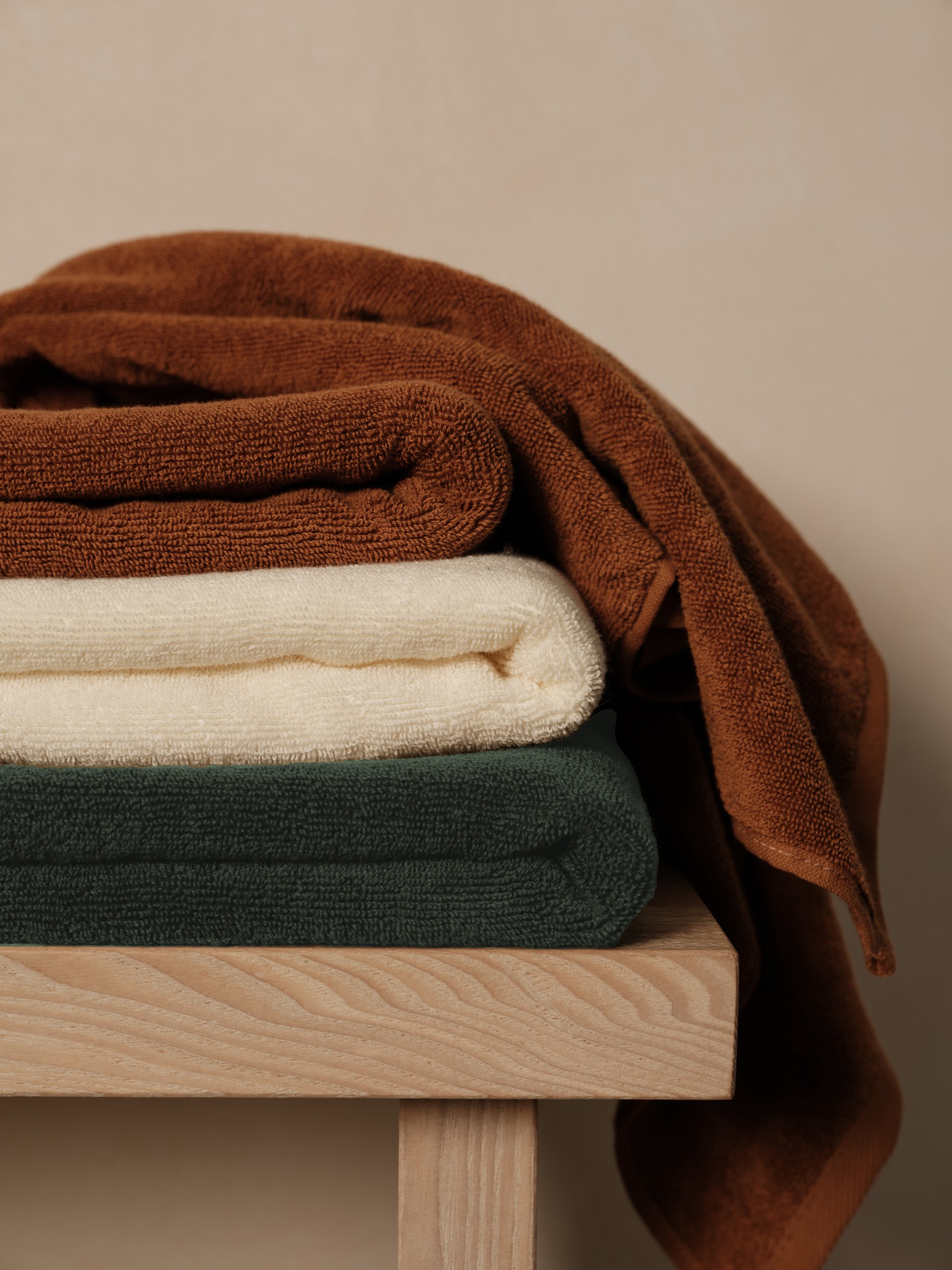 Полотенце для тела из 100% хлопка, мягкое и тактильно приятное. Подходит для нежной и чувствительной кожи. Плотный петлевой ворс быстро впитывает влагу.