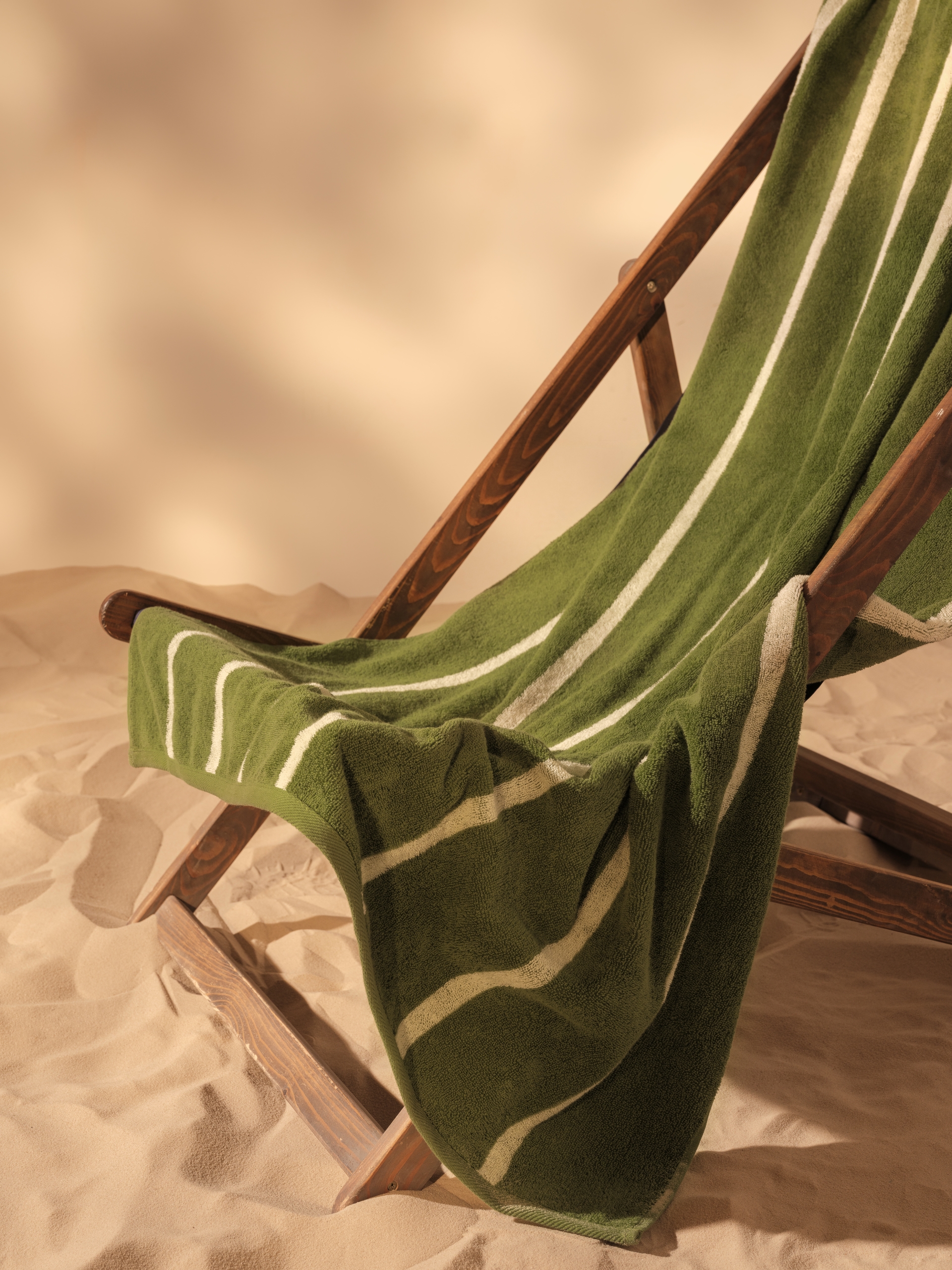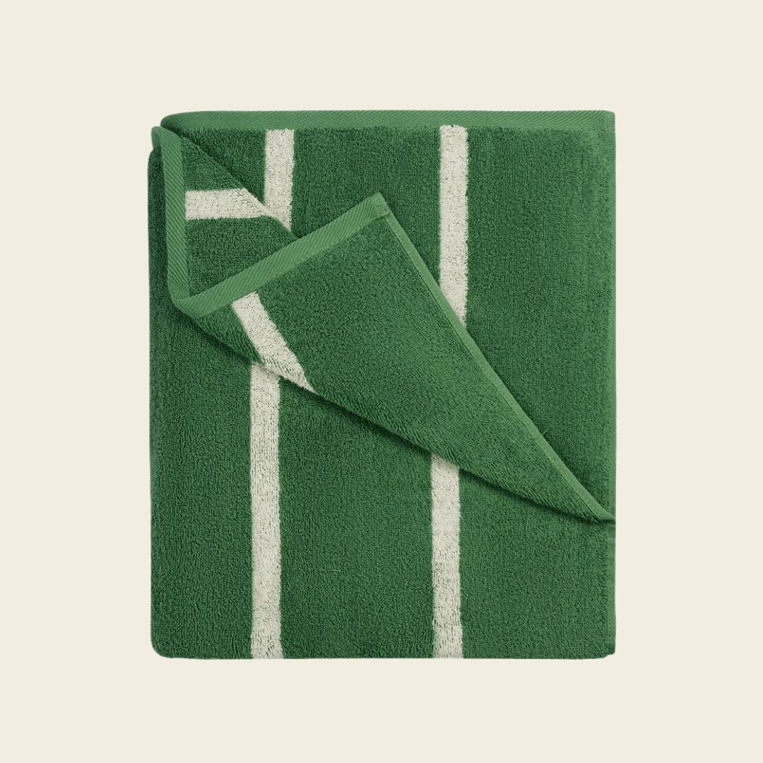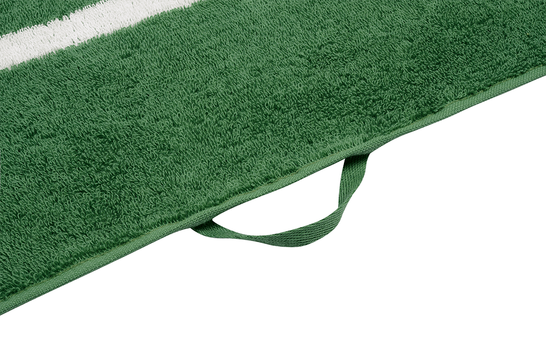 Большое полотенце с контрастной полоской идеально подходит как для пляжа, так и для сауны.