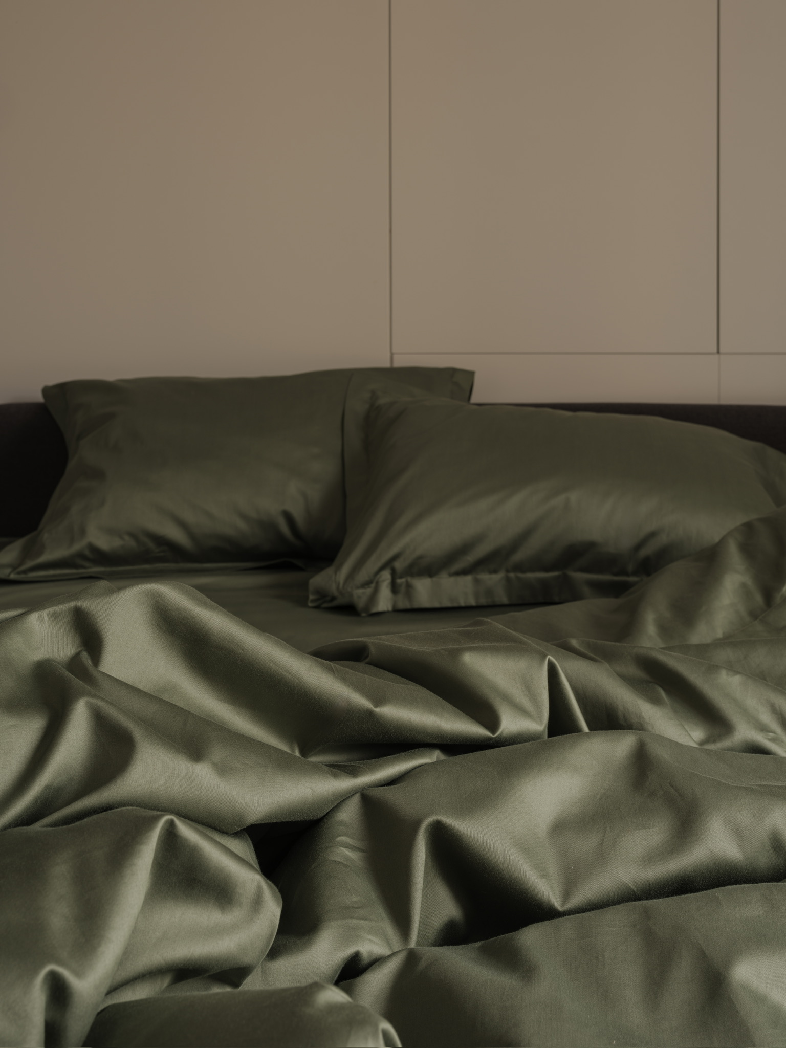 Натяжная простыня из шелковистого сатина станет прекрасным дополнением к комплекту постельного белья.