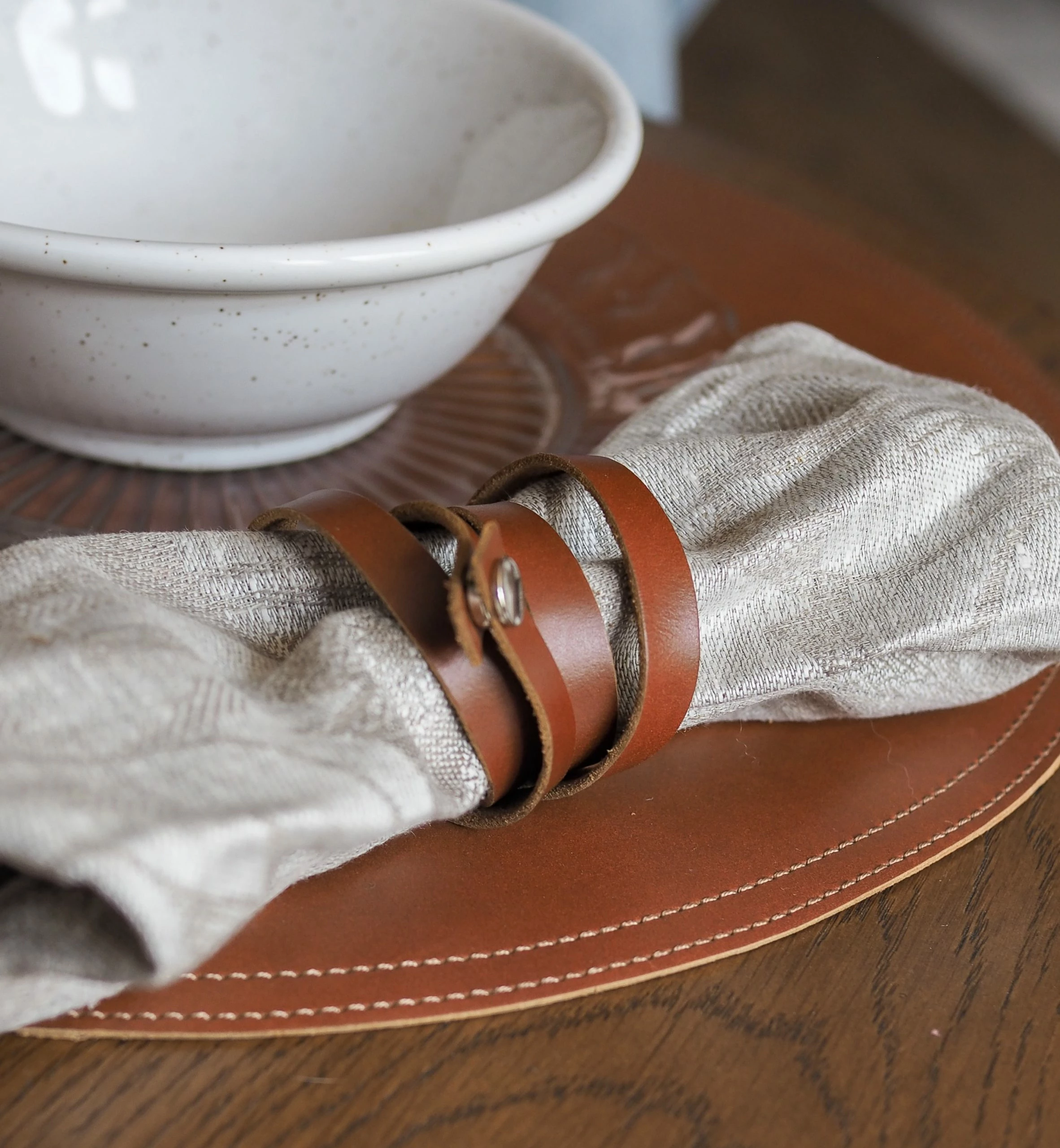 Шнурок из натуральной кожи легко и непринужденно обернет вашу салфетку и придаст законченный и стильный вид декору обеденного стола.