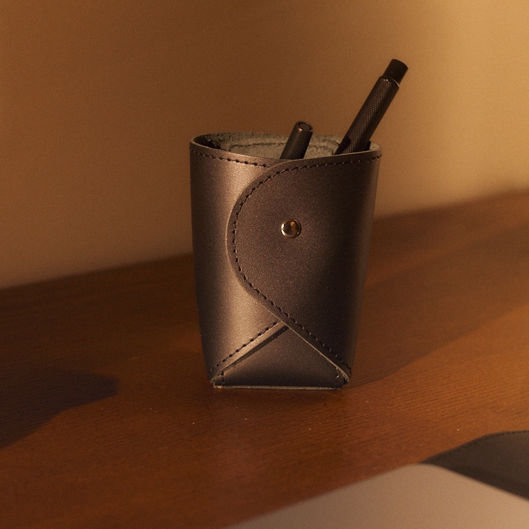 Минималистичное изделие из натуральной кожи прекрасно дополнит любой рабочий стол в офисе или дома.